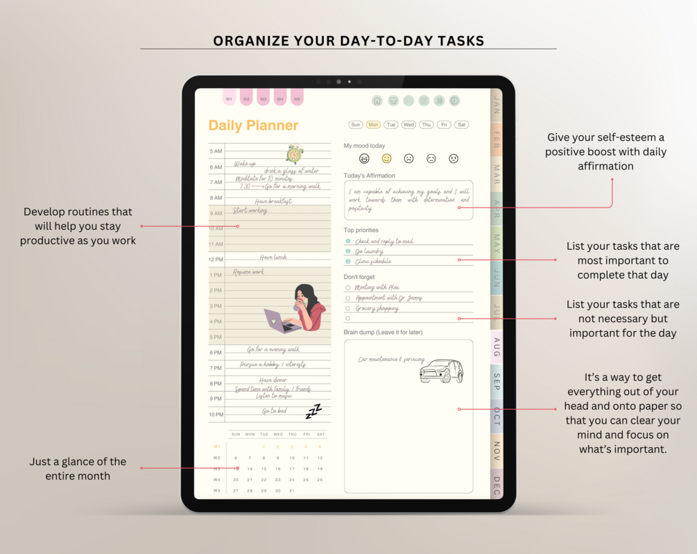 Stay organized and focused with our customizable ADHD digital planner! This planner is perfect for anyone with ADHD who wants to stay on top of their work and personal life. With a PLR license included, you can customize the planner to fit your unique needs and resell it for profit. Get started today!